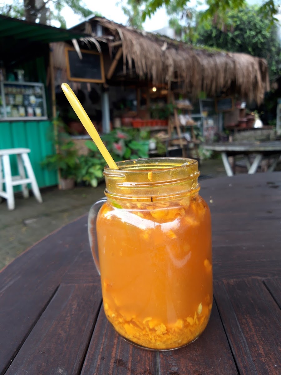 The experience at Omah Jamu Jeng Ratu is deeply tied to its menu, where familiar Indonesian herbal drinks like Jamu Pegal Linu and Jamu Kesuburan mingle with comforting concoctions such as Wedang Jahe and creamy ginger lattes. These drinks are paired with humble bites like Pisang Goreng and tender Mie Ayam Ceker, creating an honest, wholesome balance that reflects the natural, healing ethos of the place. It’s a setting where every choice feels intentional, crafted not just to fill but to nurture.